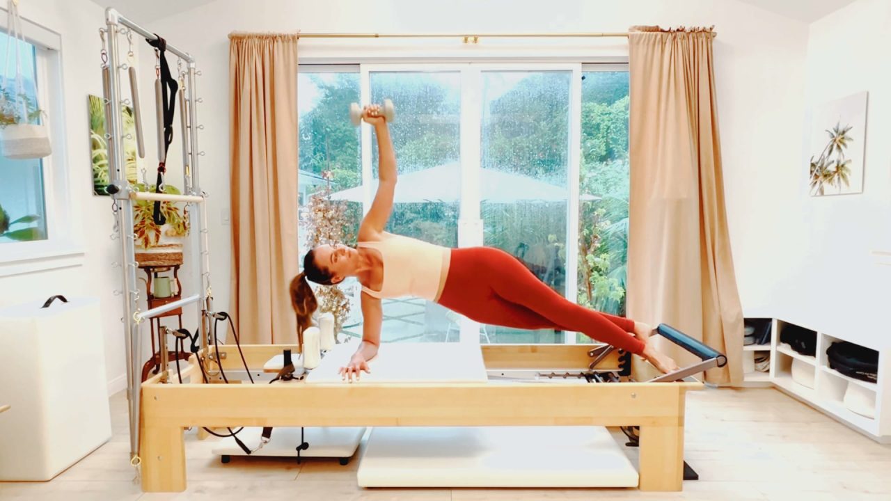 Great for short workouts! Follow the science and studies evidencing the multiple benefits of weight training for anti-aging, bone loss prevention, longevity and mobility, and much more. Weight lifting combined with spring resistance training to transform your body mass index, support and build lean muscle mass, build and maintain strong bones. Become stronger for our Pilates practice by using a different cadence and type of training, alternate to maintain the body’s challenge so it continues to grow and strengthen as opposed to plateau. Fat burn. Work specific body parts and muscle groups, work on control and precision in form and function. Improve your dynamic balance for functional daily life, increasing your eccentric strength in addition to your concentric strength. Use weights to prevent or stave off osteoporosis and other related syndromes.